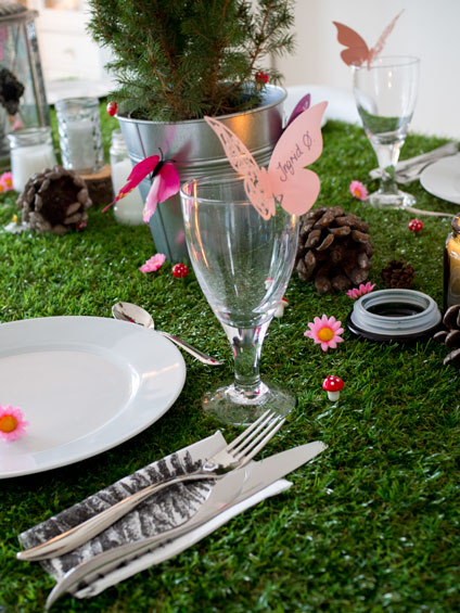 I dag kommer det noen bilder fra helgens festligheter. Lillejenta vår har nettopp fylt 2 år, og det ble dekket opp til bursdag med skogstema. Jeg kjøpte i sommer en gressduk på Jula, som er fantastisk å bruke til bordekking på barnebursdager. I sommer fungerte den som kjempekul duk for Minecraft bursdagen til Lillegutt. Og nå, med noen sopp, blomster og kongler lagt oppå, ble den kjempekul til skogsbursdag.